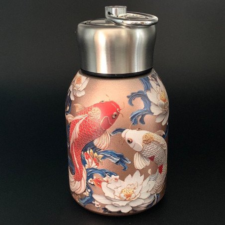 Bouteille isotherme en acier inoxydable à motif japonais, ornée d'un motif de carpe, porte-bonheur